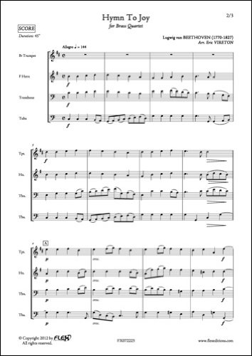 Download CLASSICAL SHEET MUSIC - Hymn To Joy - L. van BEETHOVEN - Brass Quartet PDF