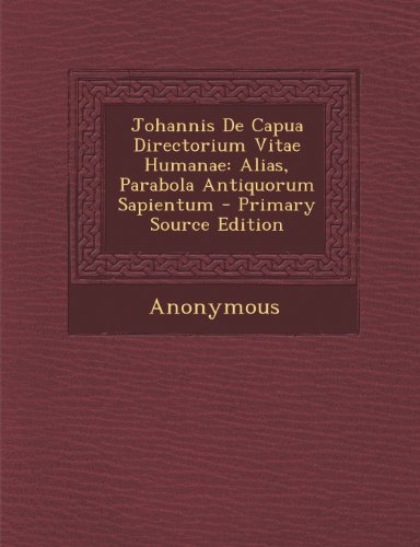 Johannis de Capua Directorium Vitae Humanae: Alias, Parabola Antiquorum Sapientum PDF Download